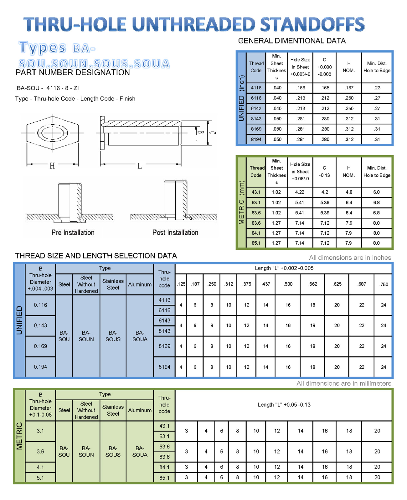 THRU-HOLE UNTHREADED STANDOFFS BA-SOU.SOUN.SOSU.SOAU