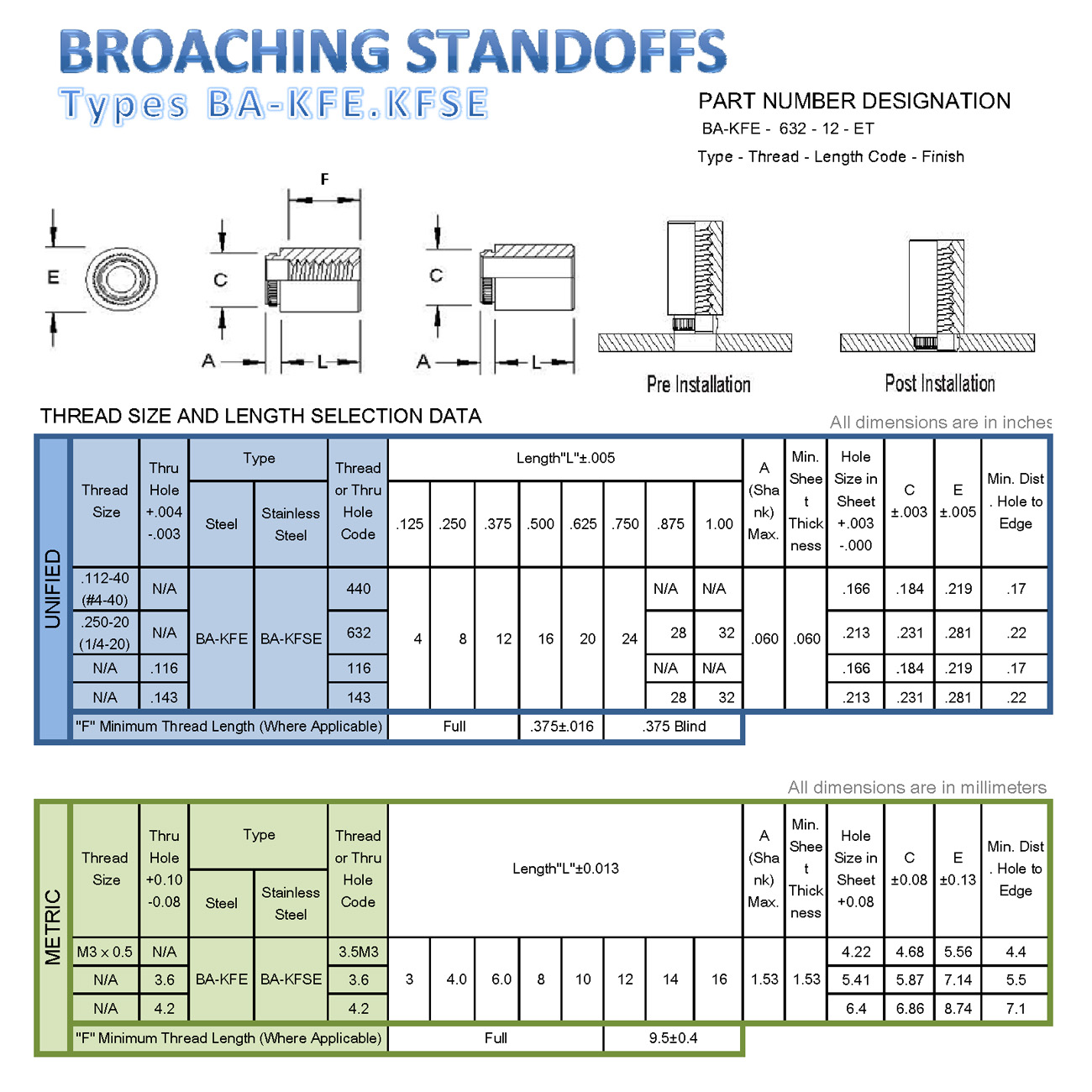 CONCEALED-HEAD STANDOFFS BA-CFHC.CHC.CSOS.CSS.CFHA